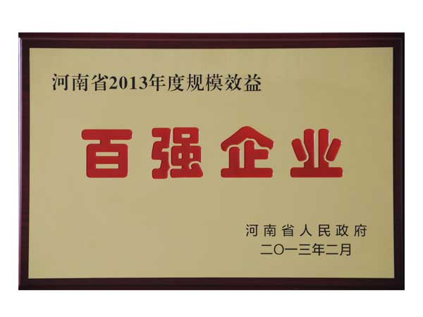 河南省2013年度规模效益百强企业