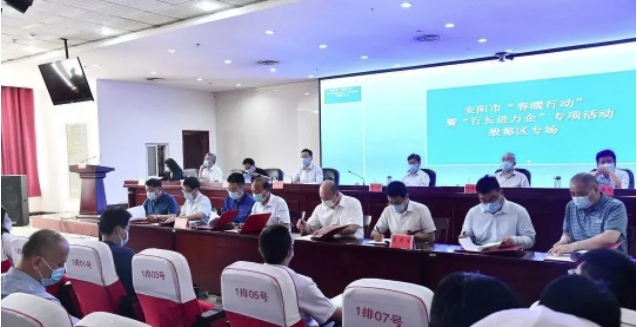 5月26日,由安阳银保监分局联合殷都区政府共同主办的殷都区“春暖行动”专题对接暨“行长进万企”专项推动活动在沙钢永兴特钢公司举行。安阳市政府副市长宋伟出席活动并讲话;安阳市金融工作局、安阳银保监分局、殷都区政府及17家银行、7家保险机构、殷都区重点企业相关负责人参加了活动。