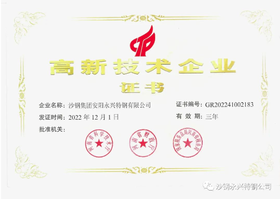 theCompanyNews喜讯!沙钢永兴特钢公司顺利通过高新技术企业复评
