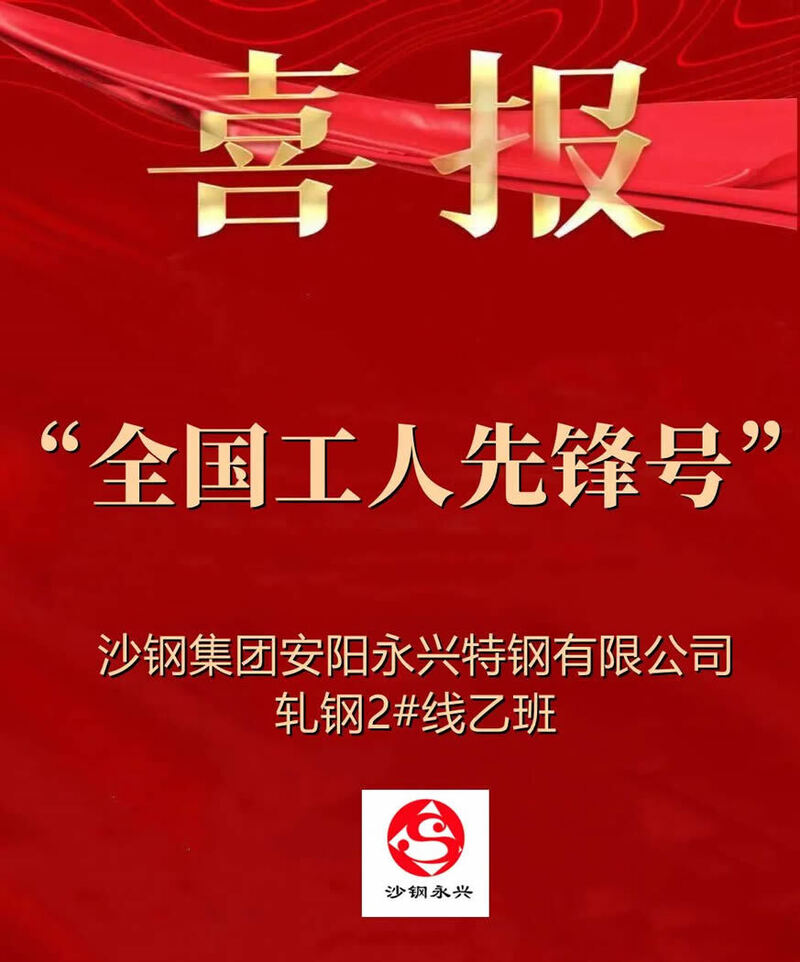 theCompanyNews全国表彰!沙钢永兴轧钢2#线乙班被授予“全国工人先锋号”称号