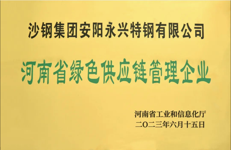 近日,喜讯传来,在河南省工业和信息化厅公布的2023年度省级绿色制造名单中,沙钢永兴公司被评定为河南省省级绿色供应链管理企业,这一荣誉的获得也是对沙钢永兴公司多年来坚定不移践行绿色发展理念所取得成果的充分肯定。
