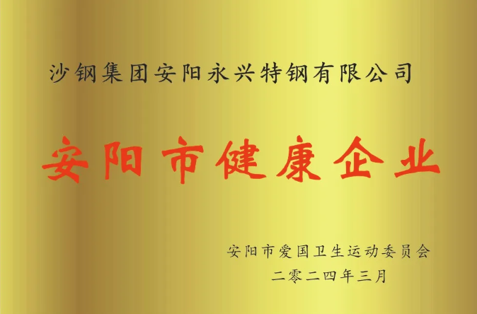 theCompanyNews赞!沙钢永兴荣获安阳市“健康企业”荣誉称号