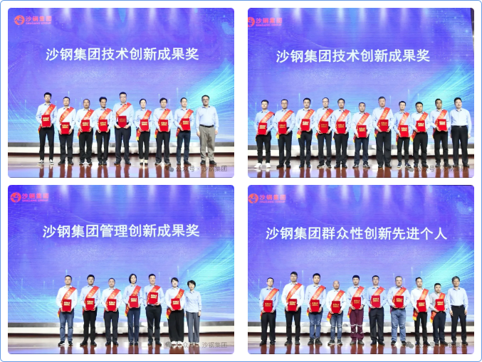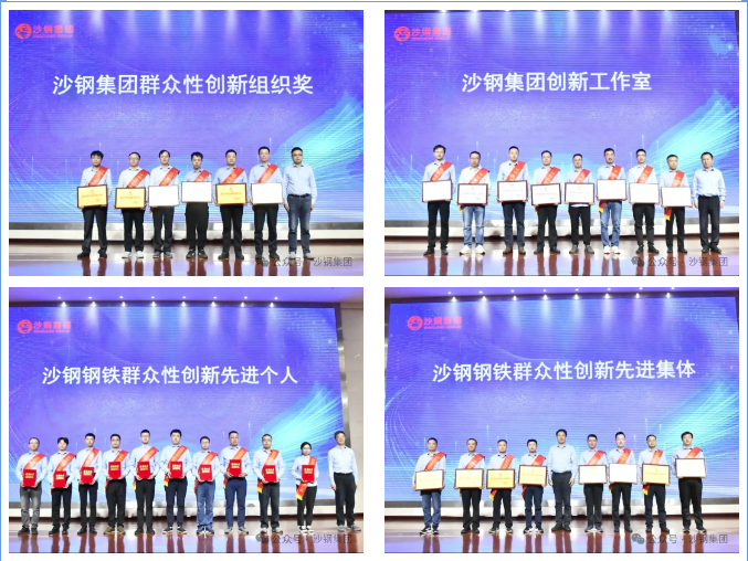 在激昂的乐曲声中,与会领导分别为沙钢钢铁群众性创新先进集体、先进个人,沙钢集团群众性创新组织奖、群众性创新先进个人奖、管理创新成果奖、技术创新成果奖获奖代表颁奖,并为“沙钢集团创新工作室”授牌。