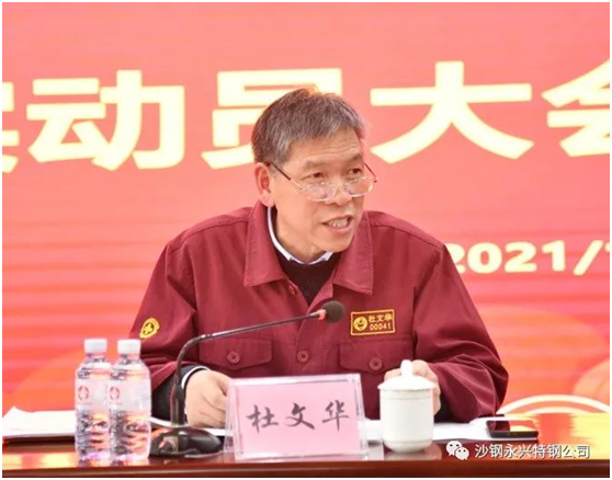 李增伟作题为《深化降本增效 加快转型升级 为实现“十五”规划开门红而努力奋斗》的讲话。就如何确保完成公司2021年任务目标,李增伟提出三点要求:一、要认清形势、把握机遇,进一步坚定发展的信心和决心。二、积极贯彻落实集团年会精神,科学谋划、创新思维,系统推进,抓好各项生产经营指标的落地。三、要强化学习提升,奉公律己、认真履职,充分展现沙钢永兴人积极向上的精神风貌。在干部管理方面,一是要树立“活到老、学到老”的理念,不断提升综合素质。二是要严于律己、克己奉公,认真履职。在职能部门管理方面,一是要注重干部的选拔和培养。二是要完善细化考核评价机制。