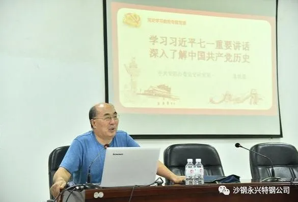 为学习宣传贯彻习近平总书记七一重要讲话精神,深入了解中国共产党历史,8月5日,由安阳市委组织举办的“学习七一重要讲话精神”专题宣讲报告会(沙钢永兴专场)在沙钢永兴特钢公司一楼电教室举行。市委宣讲团成员、市委党史研究室原副主任、副研究员朱贵强作宣讲报告。公司各支部负责人及部分党员聆听了报告。