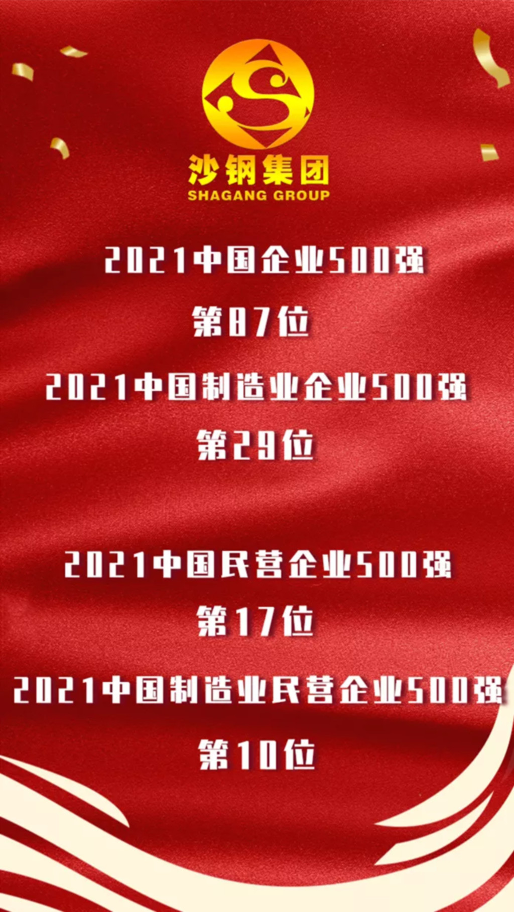 theCompanyNews2021中国企业500强、中国民企500强榜单出炉 沙钢再次荣登双榜