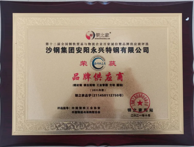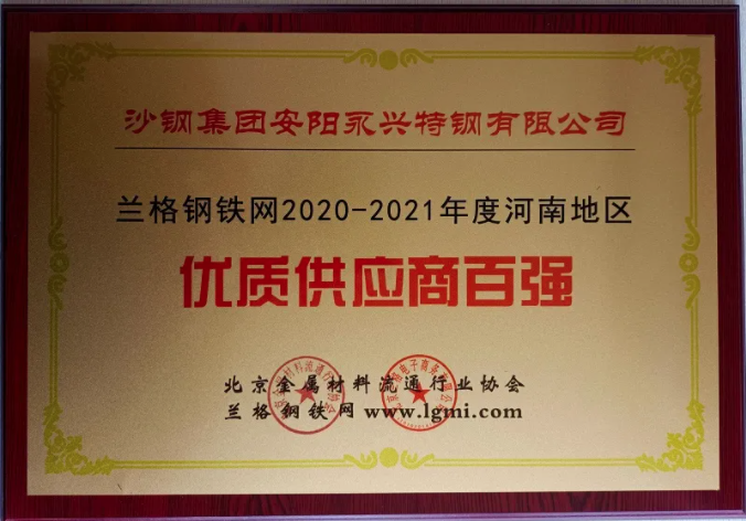 theCompanyNews沙钢永兴特钢公司连获“河南地区优质供应商百强”、“百家诚信品牌供应商”称号